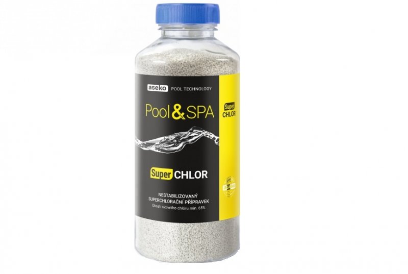 Superchlor nestabilizovaný – superchlorační přípravek (obsah aktivního chlóru 65-70%). Extra rychle rozpustný přípravek superchlor slouží k superchloraci bazénové vody. Šokově zlikviduje všechny mikroorganismy a sníží obsah celkového chloru (ten způsobuje zápach). Zoxiduje nečistoty a vodu v bazénu projasní.
