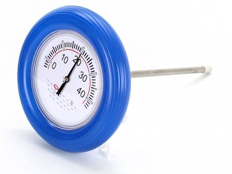 Velmi přesný a přehledný bimetalický teploměr. Přehledná stupnice v °C a °F.Průměr teploměru cca 18,5cm délka ponořené části (tyčky) je cca 28cm.Rozsah měření 0–40°C.